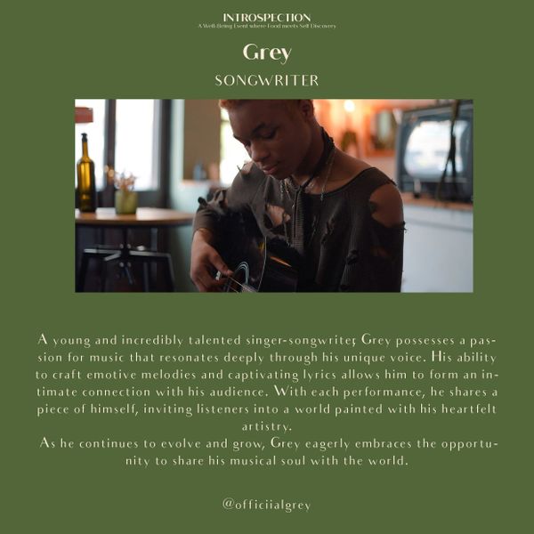 As the night unfolds, You will be enchanted by the soulful melodies of the musician Grey, adding magic to this unforgettable experience. Learn more about them below: